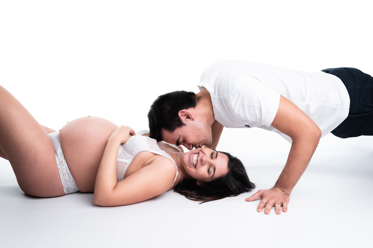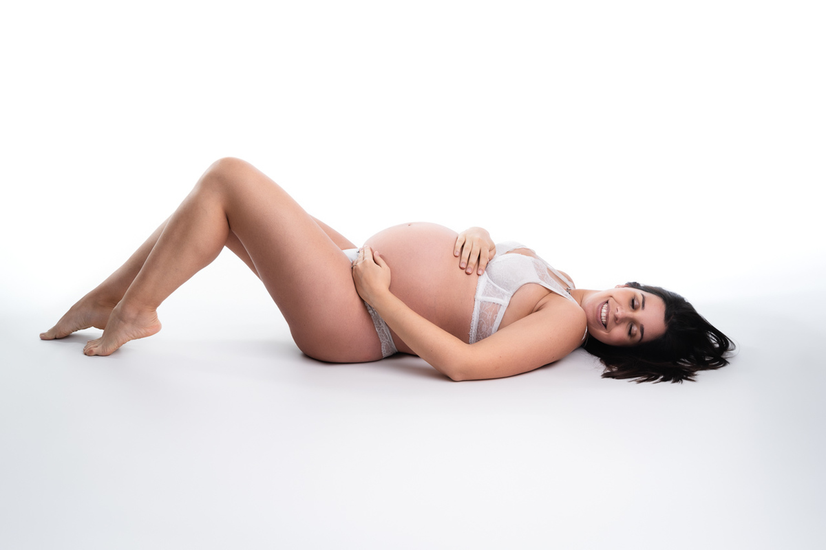 Sessão fotográfica maternidade em estúdio